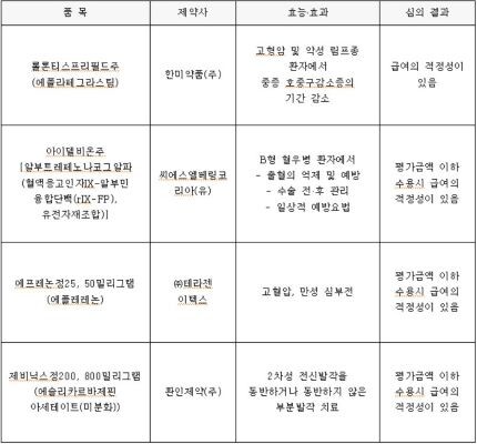 | ▲약제 요양급여 적정성 심의 결과표 (자료=건강보험심사평가원 제공) |