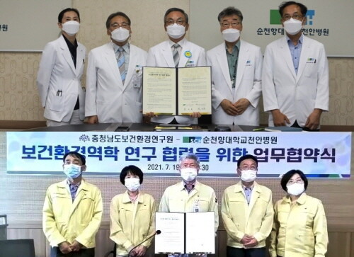 순천향대학교 부속 천안병원과 충청남도보건환경연구원이 19일 ‘보건환경역학 연구협력을 위한 업무협약’을 체결했다고 20일 밝혔다.