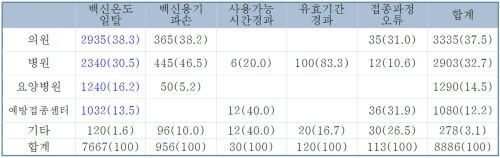 | ▲접종 기관별 폐기 사유별 폐기량 (자료=질병관리청 제공) |