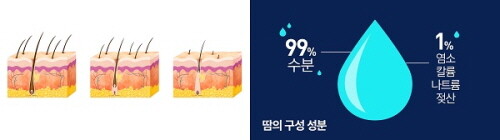 | ▲두피 단면(좌), 땀 구성 성분(우) |