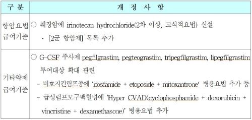| ▲항암요법 개정 내역 (자료=심사평가원 제공) |