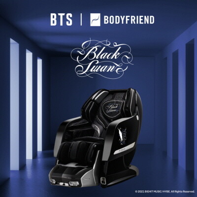 바디프랜드 관계자는 “바디프랜드에서 가장 많은 사랑을 받는 팬텀Ⅱ와 방탄소년단의 ‘Black Swan’이 만나 품격있고 우아한 감성을 극대화한 컬래버제품을 선보이게 됐다”며 “한정판 에디션으로 선보이는 제품인 만큼 단 한 사람만을 위한 안마의자를 가질 수 있는 특별한 기회를놓치지 마시길 바란다”고 전했다.
