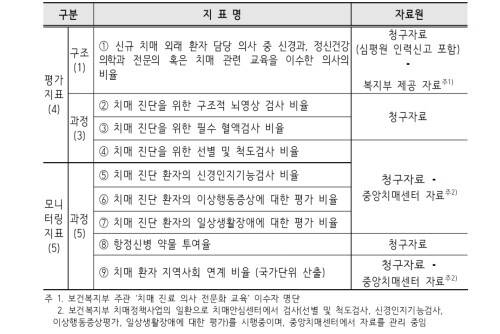 | ▲ 치매 질환 외래 진료서비스 적정성평가 평가기준 (사진= 보건복지부 제공) |