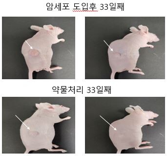 마우스를 대상으로 진행된 이번 연구에서 약물을 투여 받지 못한 쥐의 경우 암세포의 지속적인 성장을 관찰된 반면, 프로탁 기반 약물을 4mg/kg 투여 받은 쥐의 경우 암세포 크기가 크게 감소하는 경향을 보인 것으로 나타났다.