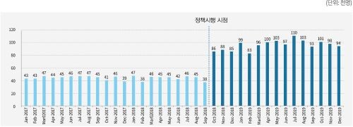 | ▲뇌 MRI 월별 청구 현황 (자료=건강보험심사평가원 제공) |