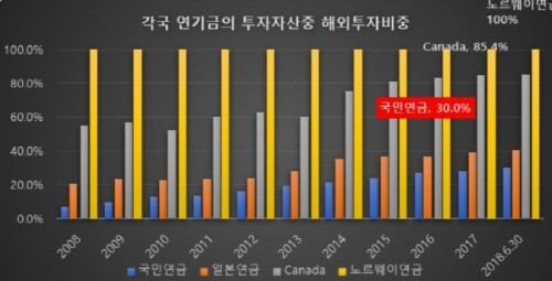 우리의 국민연금은 어느 정도의 자국편향투자를 하고 있고, 자국편향 투자는 어떤 위험을 지니고 있기 때문에 우리보다 연기금 제도가 발달한, 캐나다, 네덜란드, 노르웨이(1)는 자국편향투자를 극도로 지양하고 있는가?