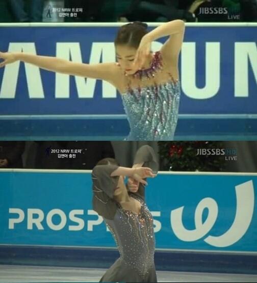 먼저 김연아가 쇼트프로그램에서 선보인 ‘뱀파이어의 키스’ 의상은 음악에 맞게 다소 가라앉은 느낌의 색감에 우아함을 더한 모습.