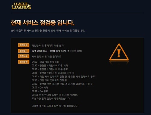 온라인 게임 ‘롤’이 서버 정기점검을 한다.