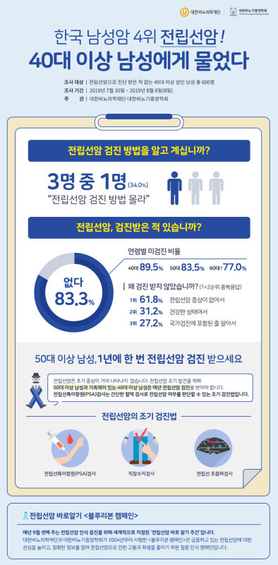 | ▲40대 이상 남성 10명 중 8명이 전립선암 검진을 한 번도 받아본 적 없는 것으로 나타났다 (사진=대한비뇨의학재단∙대한비뇨기종양학회 제공) |
