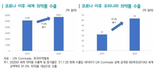 | ▲코로나19 이후 의약품 수출 (자료=국제무역통상연구원 제공) |