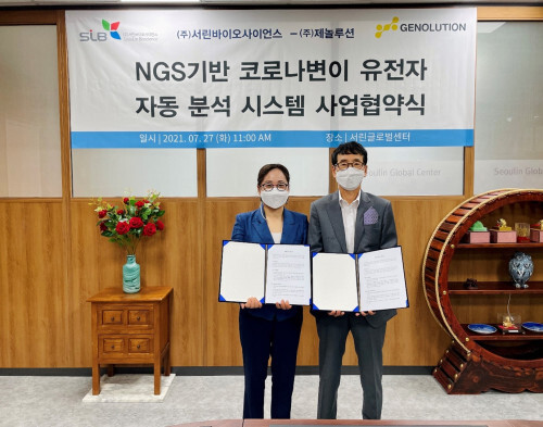 이번 협약식은 핵산 추출 풀랫폼의 국내 물품공급 계약으로 서린바이오사이언스가 확보한 전국 유통망을 활용해 제놀루션의 핵산 추출 플랫폼을 판매할 예정이다. 또한 이를 기반으로 향후 코로나 변이유전자 NGS 분석 업무 협업을 진행해 코로나 방역에 관련된 사업을 협조해 나갈 방침이다.
