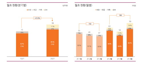 이는 사업 초기 비용 탓에 꾸준히 적자를 이어온 것으로 분석된다. 월별로 보면 4월 80억원, 5월 120억원, 6월 90억원 등 매달 당기순손실을 기록했다.