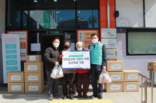 건보공단은 취약계층 600세대(1,700여 만원 상당)에 반찬도시락 및 간편식 배달하고, 밥상공동체종합사회복지관 등 다중이용시설 7곳에는 감염 예방물품으로 손소독제 140개를 전달했다.