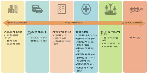 건강가치창출지수는 ▲구조조직 ▲수요/현황조사 ▲계획수립 ▲실행 ▲평가 및 피드백 ▲성과 6개 영역 총 105개 항목을 측정한다.