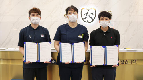 | ▲이즈치과-화성시농구협회 의료 서비스 지원 협약식 (사진=이즈치과 제공) |