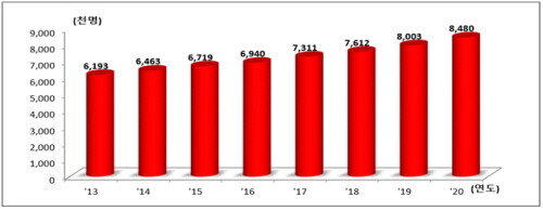 2020년 12월 말 기준 의료보장 인구 중 65세 이상 노인은 848만명으로 전년대비 6% 증가했으며 신청자는 6.3% 증가한 118만 명, 인정자는 11.1% 증가한 86만명으로 나타났다.