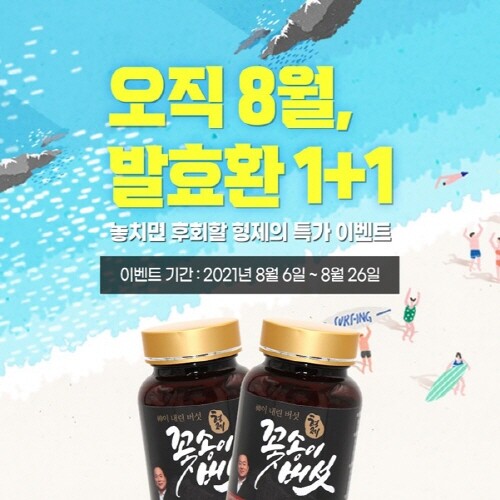 형제꽃송이버섯 8월 신규 이벤트는 월간 이벤트와 주간 이벤트로 나눠져 있다. 월간 이벤트는 8월 6일부터 8월 26일까지 진행하며, 형제꽃송이버섯 발효환을 1개 구입하면 1개를 추가 증정한다.