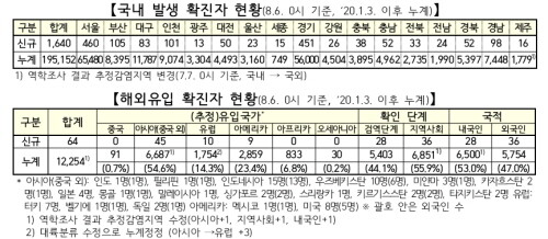 의심신고 검사자 수는 4만3216명, 수도권 임시선별검사소 검사 건수는 7만4720건(확진자 321명), 비수도권 임시선별검사소 검사 건수는 1만8426건(확진자 66명)으로 총 검사 건수는 13만6362건이다.