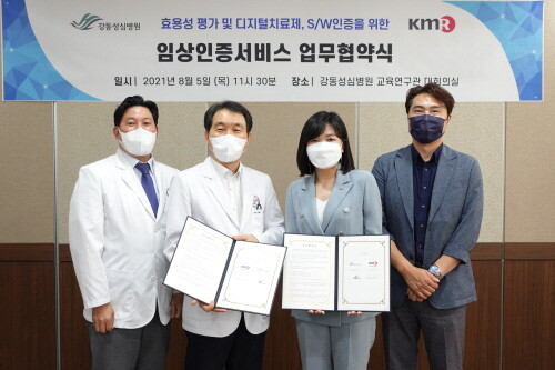 강동성심병원이 국내 최대 경영시스템 인증전문기관인 한국경영인증원과 ‘효용성 평가 및 디지털치료제, S/W인증을 위한 임상인증서비스’ 양해각서(MOU)를 체결했다고 6일 밝혔다.