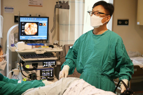 | ▲변정식 교수가 조기 대장암 환자에게 내시경절제술을 시행하고 있다 (사진=서울아산병원 제공) |