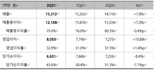 영업이익률은 52.9%로, 코로나19의 재확산 영향이 있었음에도 불구하고 견조한 매출 성장 및 높은 이익률을 기록했다.