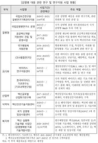| ▲감염병 대응 관련 연구 및 연구지원 사업 현황 (자료=국회예산정책처 제공) |