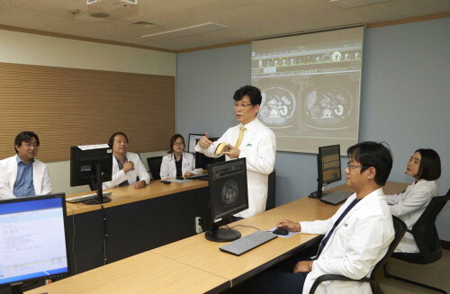 | ▲ 순천향대 부천병원 다학제 의료진이 간암 환자의 방사선치료 방법과 시기를 논의하고 있다. (사진= 순천향대 부천병원 제공) |
