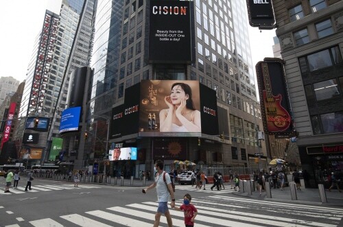 십년후애가 하루 유동인구만 150만명인 뉴욕 타임스퀘어의 전광판에 노출돼 이목을 끌고 있다.