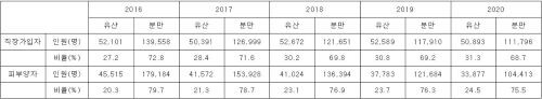 직장가입자의 경우 2016년 5만2101명, 2017년 5만391명, 2018년 5만2672명, 2019년 5만2589명, 2020년 5만893명 등으로 매년 5만명 이상의 유산인원이 발생하고 있었다.