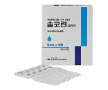 솔코린점안겔과 솔코린점안액은 각각 1994년과 2006년에 허가를 받은 제품으로, ▲각막궤양 ▲각막손상 ▲산 또는 알칼리에 의한 각막부식 ▲각막의 퇴행성 병변 ▲대수포성 각막염 등에 효능효과가 있다. 솔코린점안액은 결막의 퇴행성 병변에 대해서도 효능효과가 있다.