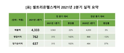 | ▲ 셀트리온헬스케어 2021년 2분기 실적 요약 (사진=셀트리온헬스케어 제공) |