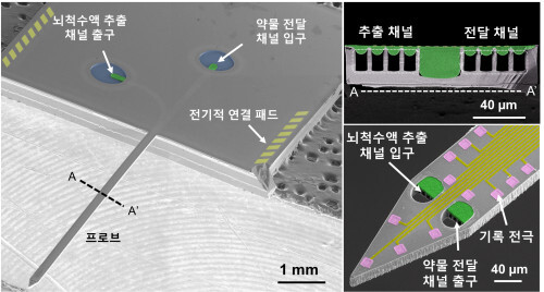 한국과학기술연구원(KIST) 뇌과학연구소 조일주 단장 연구팀은 이러한 한계점을 극복하기 위해 뇌척수액 추출용 유체 채널, 약물 주입용 유체 채널, 뇌 신호 측정용 전극이 집적된 초소형 다기능 브레인 칩을 개발했다고 17일 밝혔다.