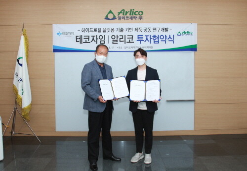 | ▲ 알리코제약-테코자임 전략적 파트너십 위한 업무 협약 (사진= 알리코제약 제공) |