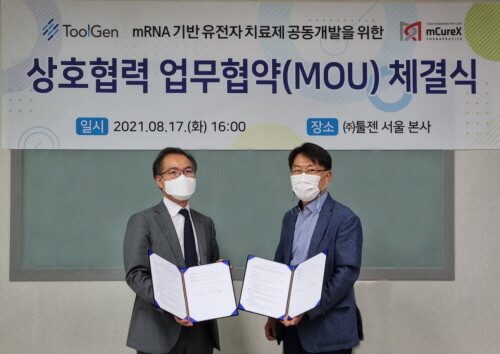 유전자교정 전문기업인 툴젠은 mRNA 전문기업 엠큐렉스와 mRNA 기반 유전자 치료제를 공동개발을 목적으로 하는 업무협약을 체결했다고 18일 밝혔다.