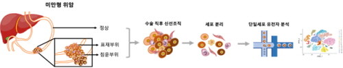 연구팀은 미만형 위암으로 수술을 받은 환자들의 정상위조직, 암이 시작되는 표재성 부위, 그리고 암이 진행함에 따라 침윤이 진행된 부위에서 각각 시료를 채취해 단일세포유전자 분석을 시행했다.