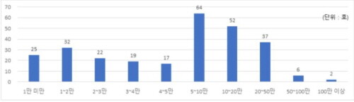 전체 10만수 이상 대규모 사육 농가 중 46%(97호)가 신청하였고, 100만수 이상 농가는 100%, 100~50만수 농가는 60%가 참여하는 등 시설 여건이 좋은 농가들의 참여가 많은 것으로 나타났다.