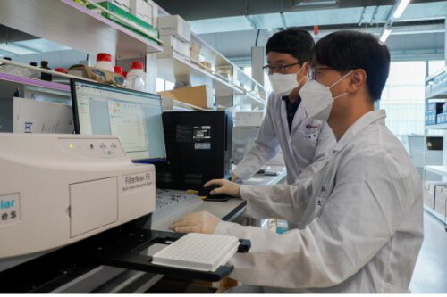 | ▲오송첨단의료산업진흥재단 직원이 연구실에서 변이 코로나19 치료항체 중화능 시험을 하고 있다. (사진=오송첨단의료산업진흥재단 제공) |