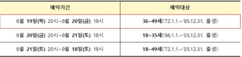 코로나19 예방접종 대응추진단은 19일 18시까지는 18~49세 청장년층의 10부제 예약이 마무리되고, 20시부터는 36~49세 연령층의 사전예약이 다시 가능하다고 안내했다.