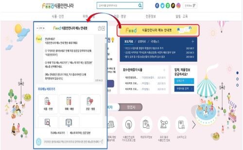 | ▲식품안전나라 메뉴 안내봇 탑재 화면 (사진= 식품의약품안전처 제공) |