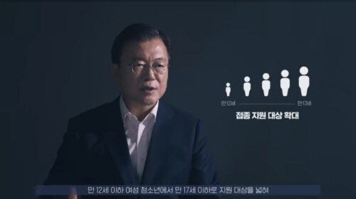 지난 19일 문재인 대통령은 자궁경부암 백신 접종 지원 확대를 요청한 청원에 대해 무료 접종 대상을 만 12세 이하 여성 청소년에서 만 17세 이하로 지원 대상을 넓히겠다고 답변했다.