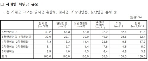 | ▲ 사례별 지원금 규모 (사진= 대한약사회 제공) |