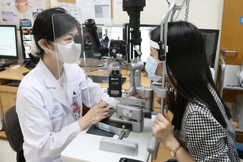| ▲ 서울아산병원 안과 성경림 교수가 녹내장 환자를 진료하고 있다. (사진= 서울아산병원 제공) |