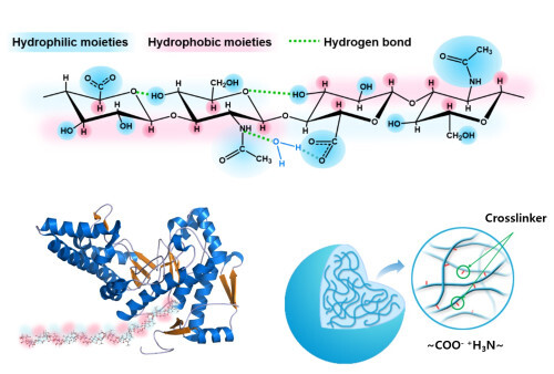 | ▲히알루론산 체내 분해 메카니즘 및 하이드로젤 모식도 (사진=POSTECH 제공) |