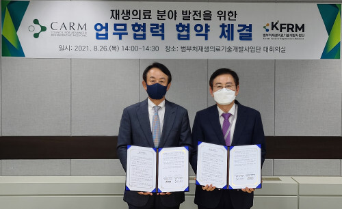 범부처재생의료기술개발사업단(KFRM)은첨단재생의료산업협의회(CARM)와 업무협약(MOU)을 체결했다고 26일 밝혔다.