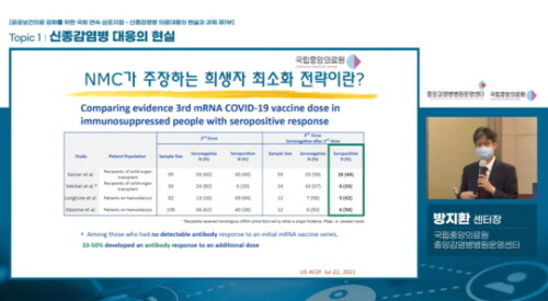 | ▲ 국립중앙의료원 방지환 중앙감염병병원운영센터장은 정부의 방역정책이 희생자를 줄이는 방향으로 나아가야 한다고 제언했다. (사진= 국립중앙의료원 유튜브 채널) |