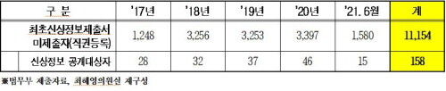| ▲성범죄자 최초신상정보제출서 직권등록 현황 (사진=최혜영 의원실 제공) |