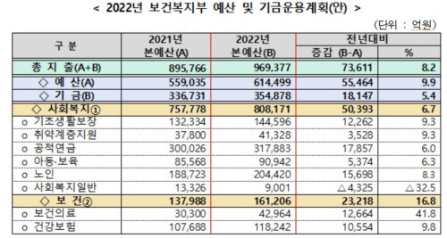 | ▲2022년 보건복지부 예산 및 기금운용계획(안) (사진=복지부 제공) |