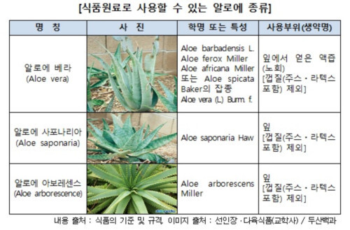 | ▲식품원료로 사용할 수 있는 알로에 종류 (사진=한국소비자원 제공) |