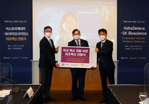 이날 전달식에는 한국아스트라제네카 김상표 대표이사 사장, SK바이오사이언스 안재용 대표이사 사장이 참석하였고, 아스트라제네카 조 펑 아시아지역 사장이 영상으로 참석했다.