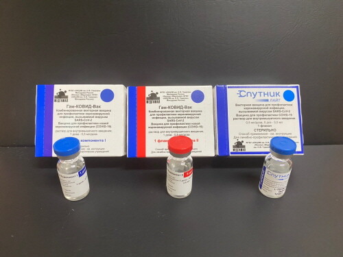 | ▲ 한국코러스에서 생산한 스푸트니크 백신, 좌측 2개 스푸트니크 V 백신, 우측 스푸트니크 라이트 백신 (사진= 한국코러스 제공) |